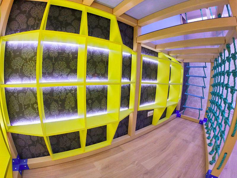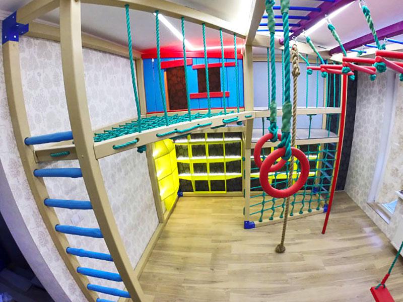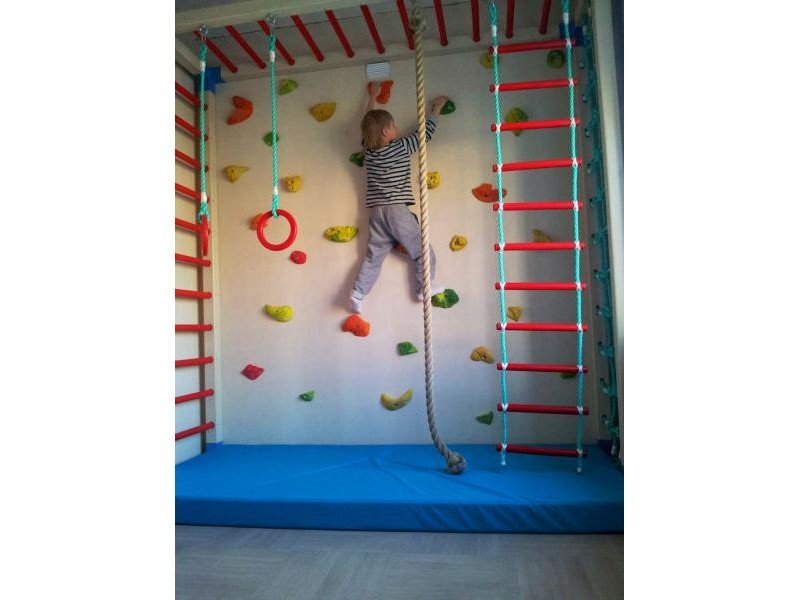 Детские площадки для квартиры могут быть похожи на лаконичный гимнастический зал или вольер для мартышек… Если надо, то потолок будет небом, а паркет газоном. Воображайте дорогие взрослые, оглядывая пока еще пустую комнату, предназначенную для детской. Полистайте журналы, загляните в интернет, посетите зоопарк… Потом звоните нам. Уж мы то развернемся на славу.